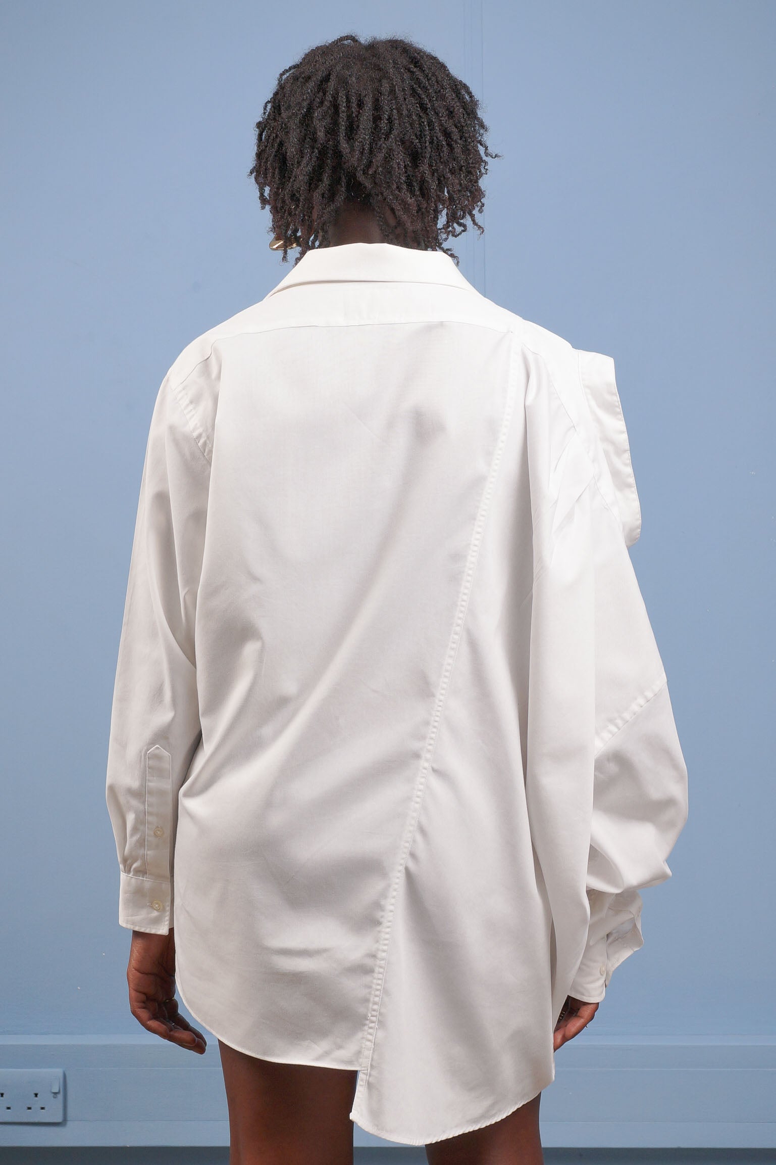 部分的にブリーチしてまだらな効果を出した長袖シャツ。