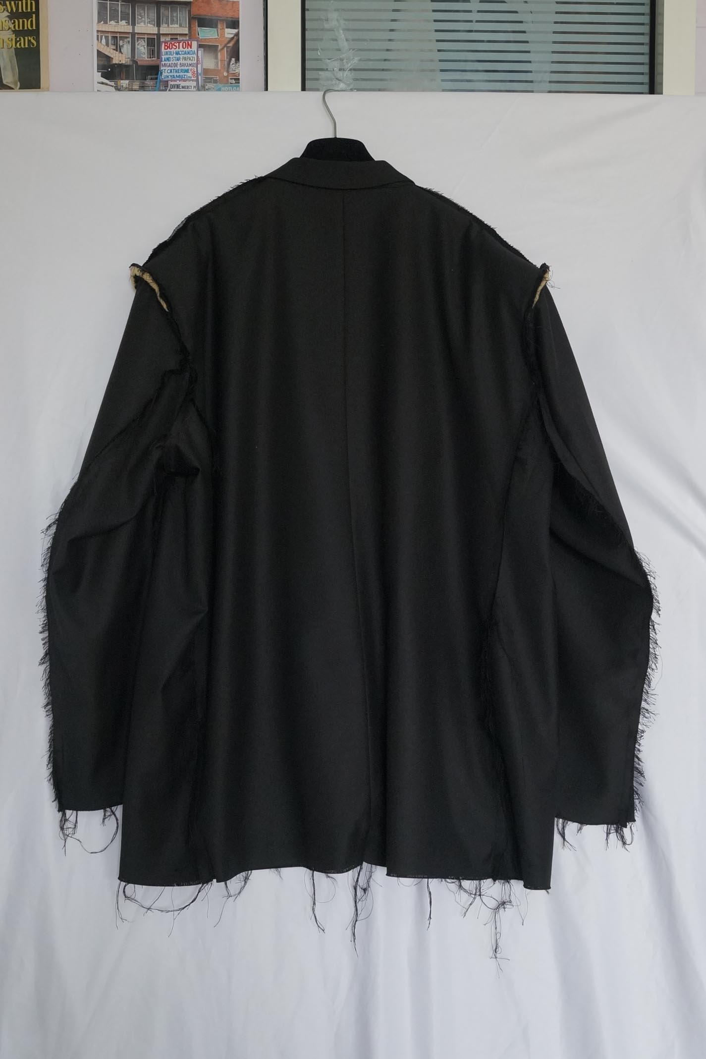 4 枚のスウェットシャツのパネルを組み合わせて、裏返しの縫い目を備えたオーバーサイズのパーカーを作りました。