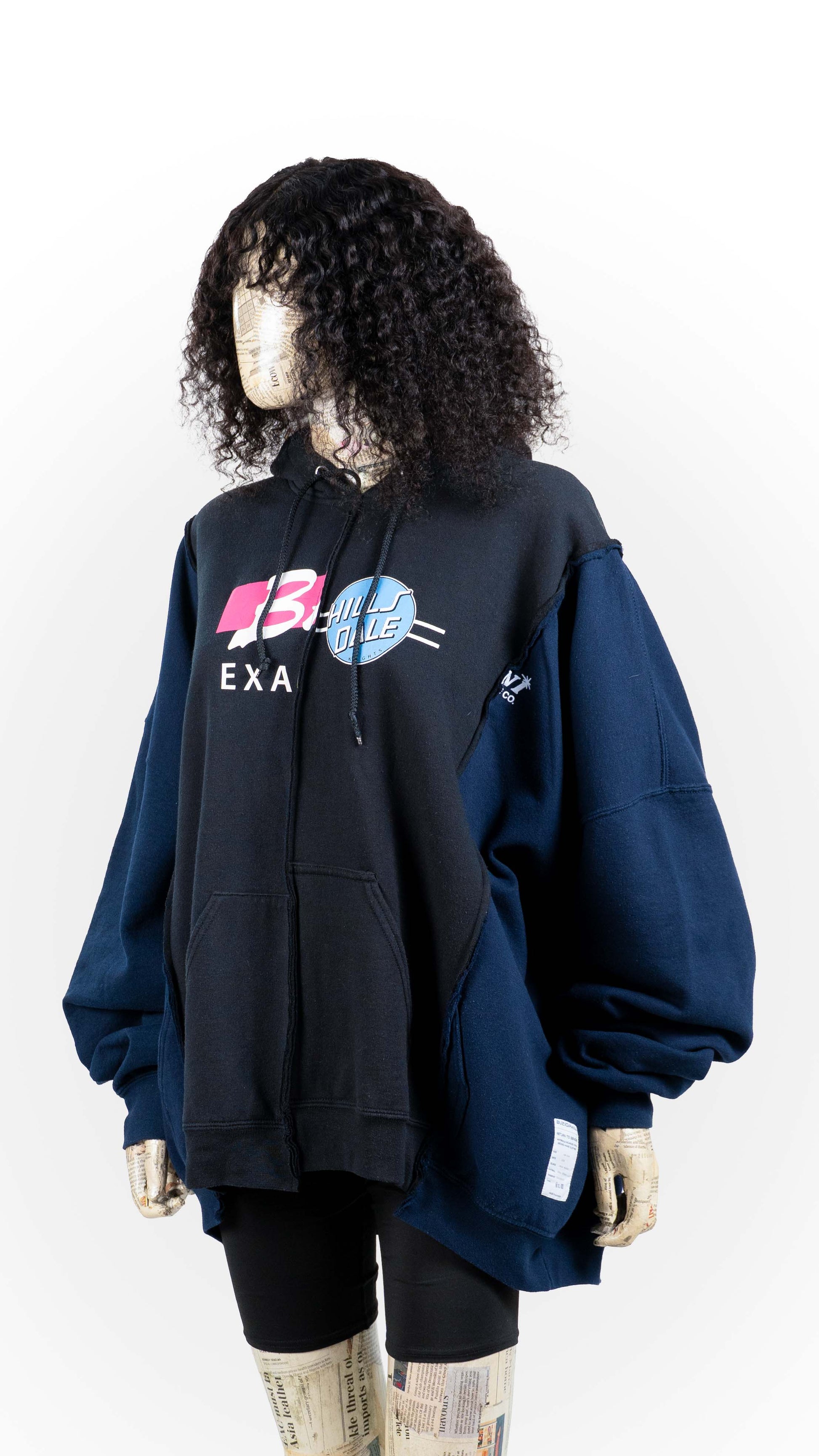 This classic RETURN TO SENDER piece is back due to popular demand. Panels from four sweatshirts are joined to make one oversized hoodie with raw inside-out seams.
