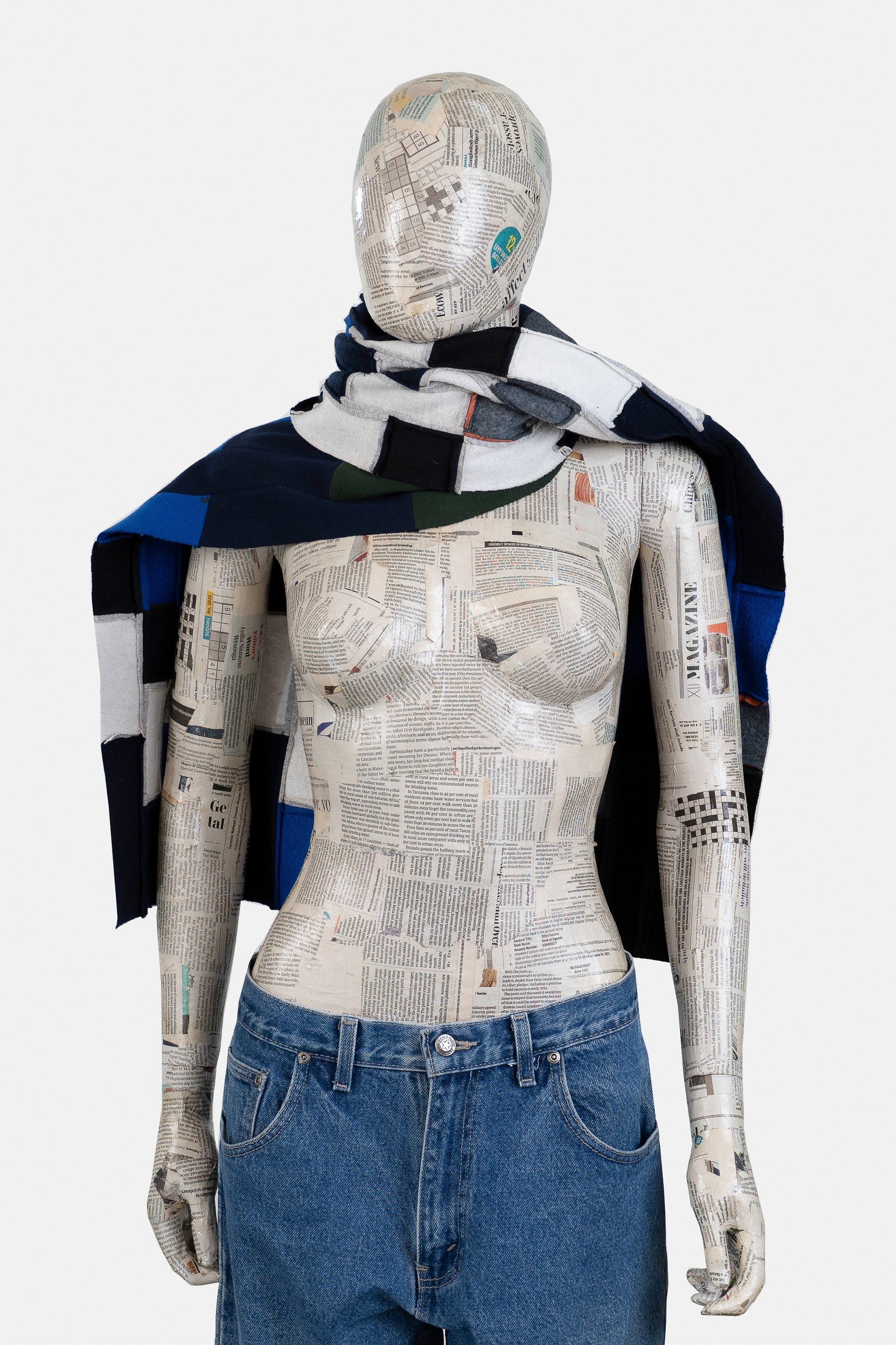 Strips of different lengths are cut from hoodies and carefully rejoined in a pixel-like puzzle remix to make a scarf that is as durable and comforting as your favourite hoodie.