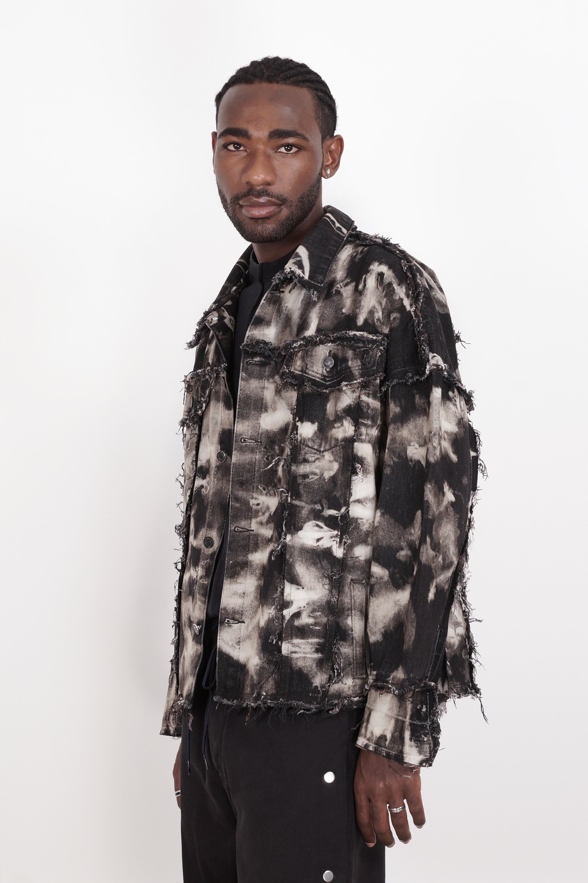 Classic denim jackets dismantled, bleached in pieces and reassembled with all raw seams reversed to the exterior. We recommend wearing this jacket in a size larger than you usually would.