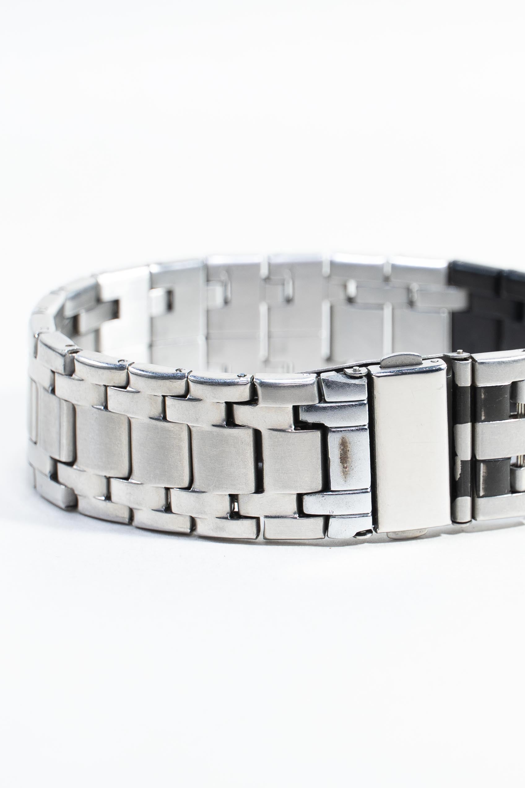 Bracelet made using fragments from watches which are carefully chosen and joined by a watch repairer. Small scratches and patina are a testament to the past lives of each fragment.